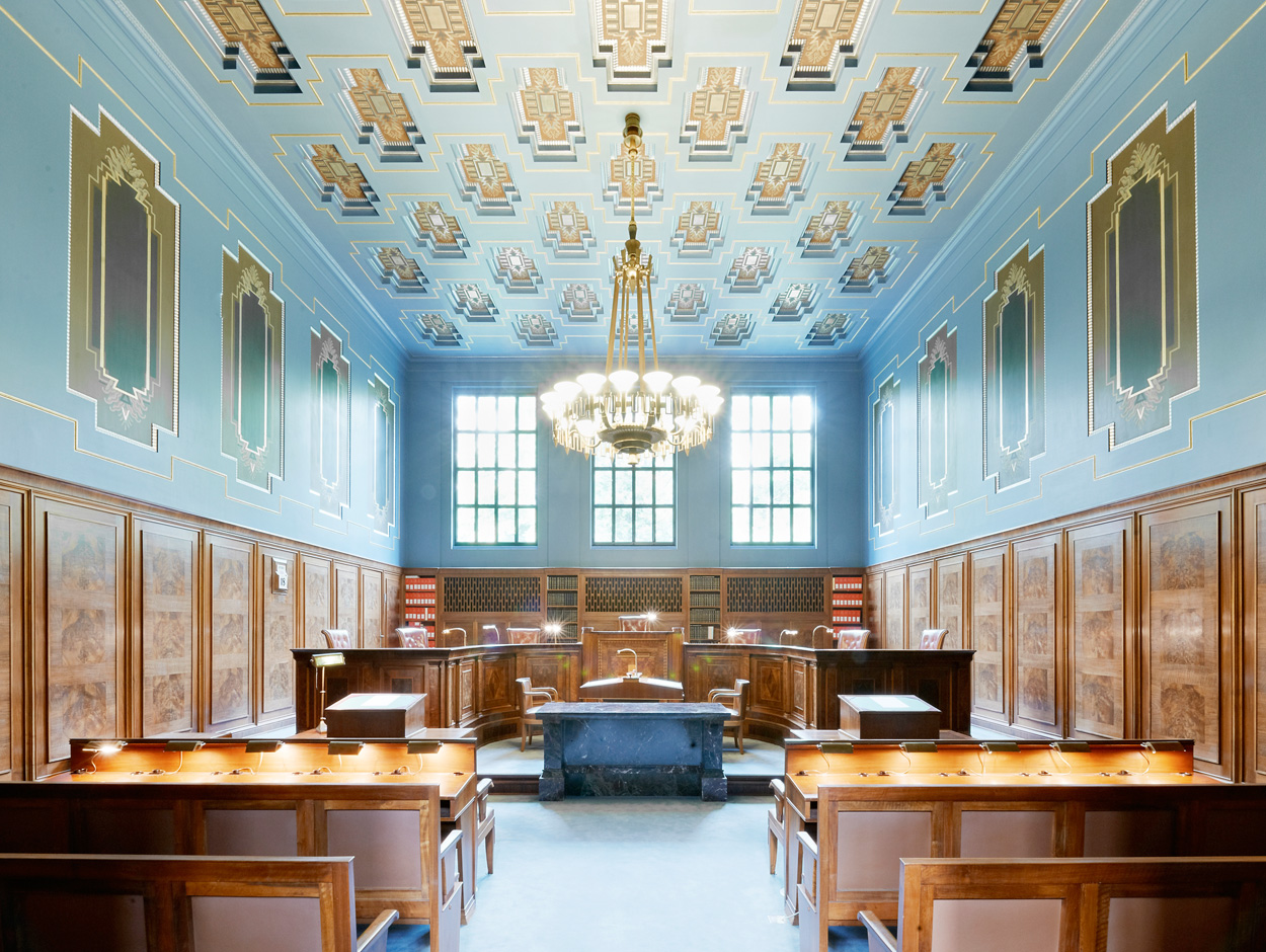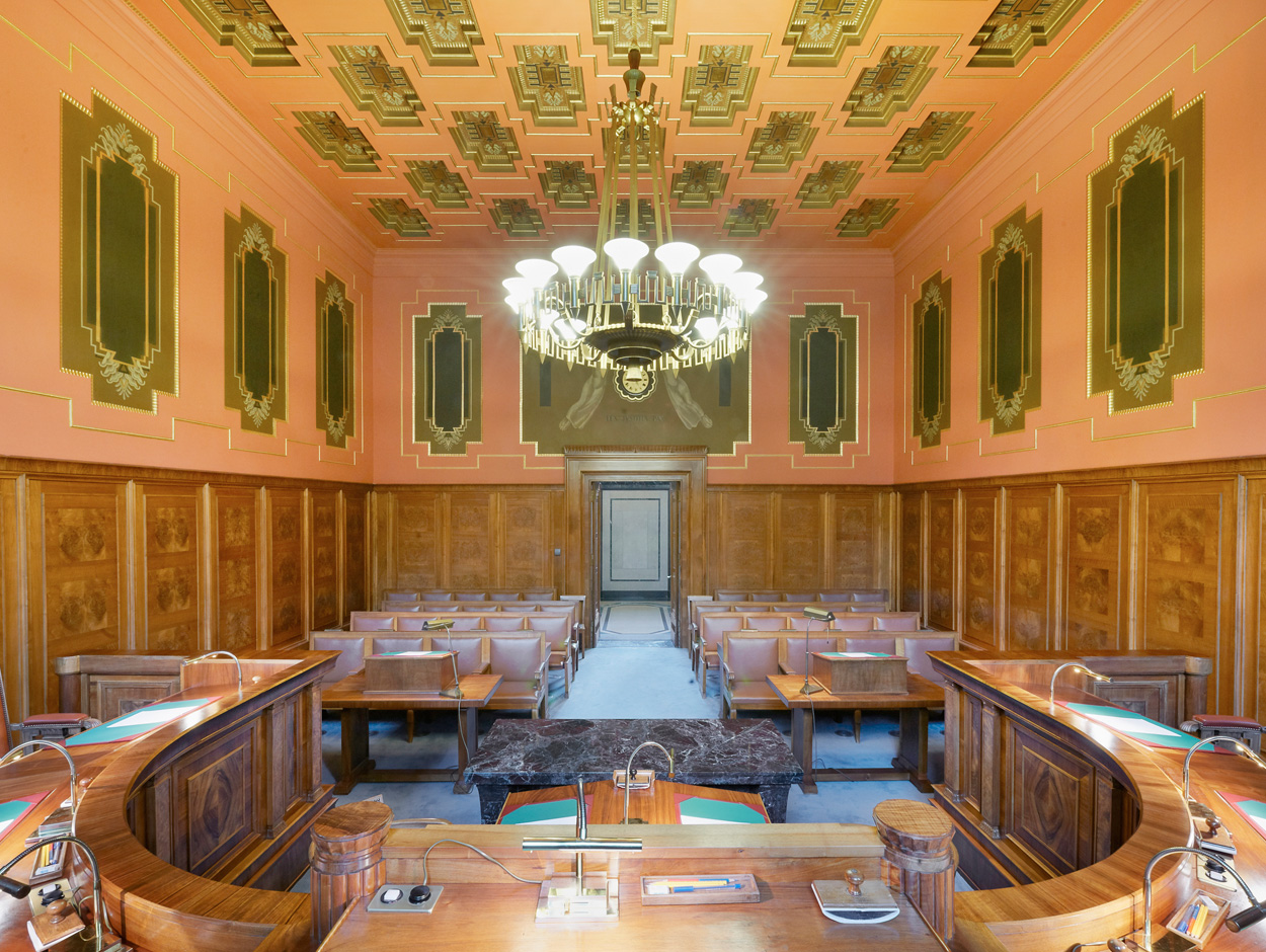 La Grande Salle accueille les audiences, les délibérations ouvertes aux parties et au public de la première et de la deuxième Cour de droit public.